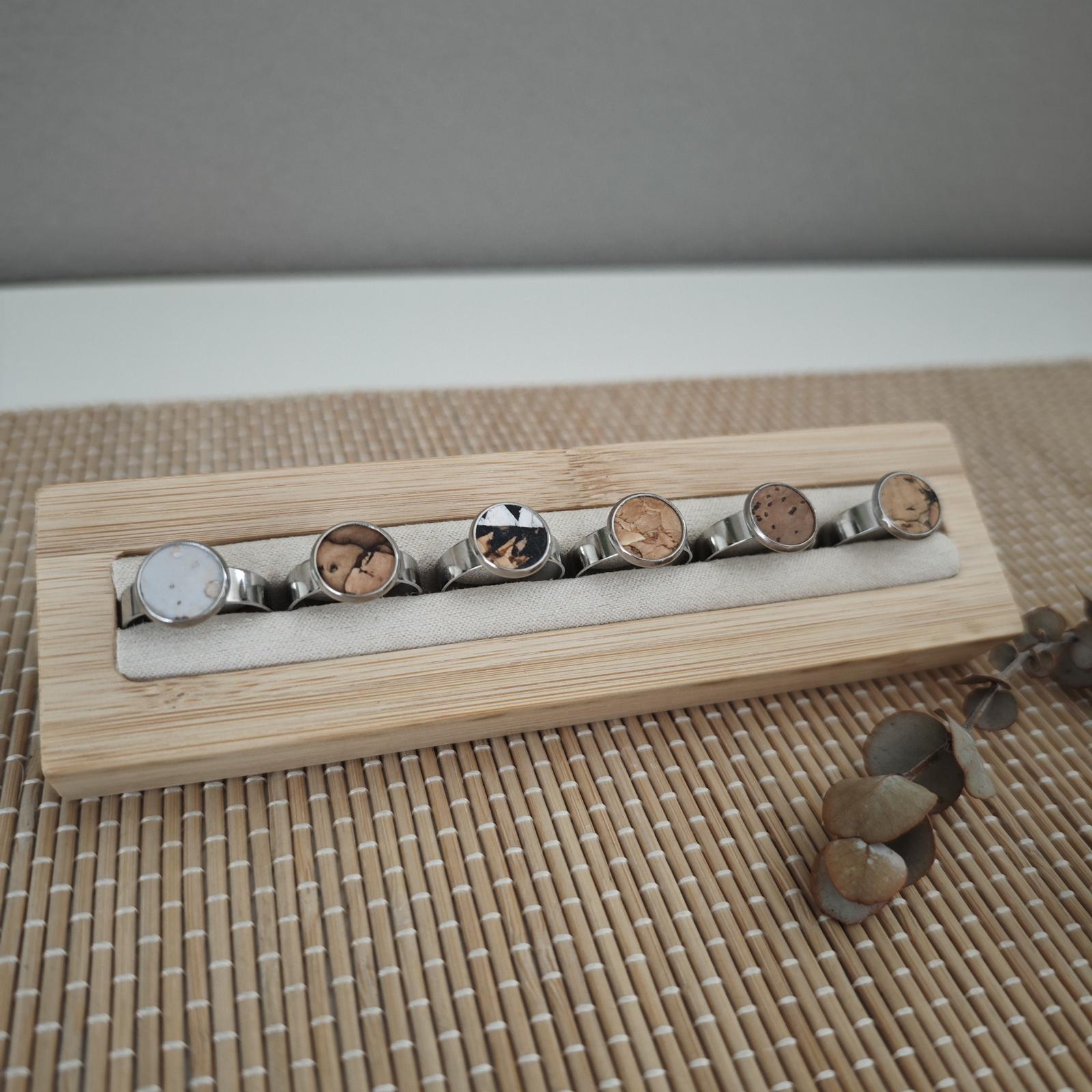 Fingerring Edelstahl mit Kork-Inlay, verstellbar - Preis 10,- €
