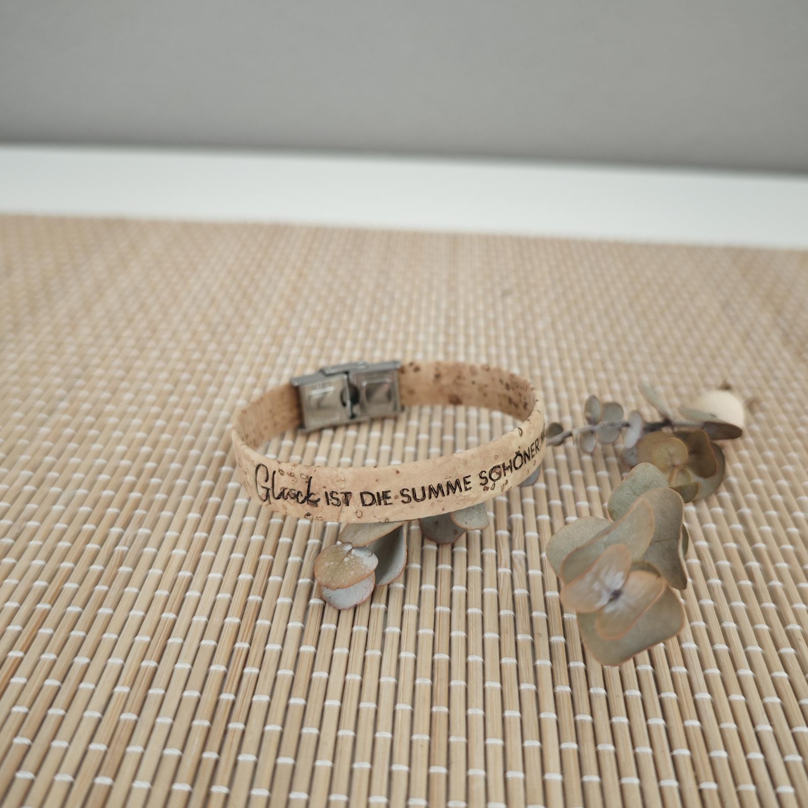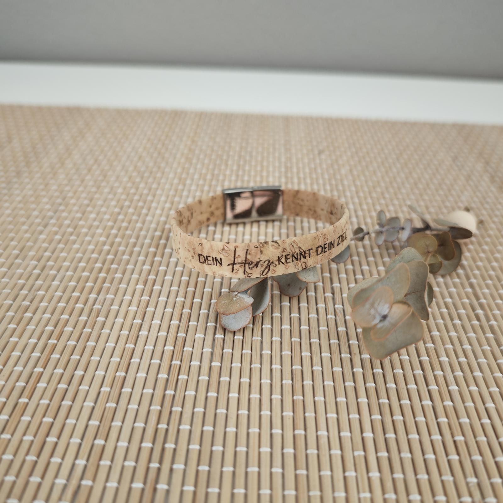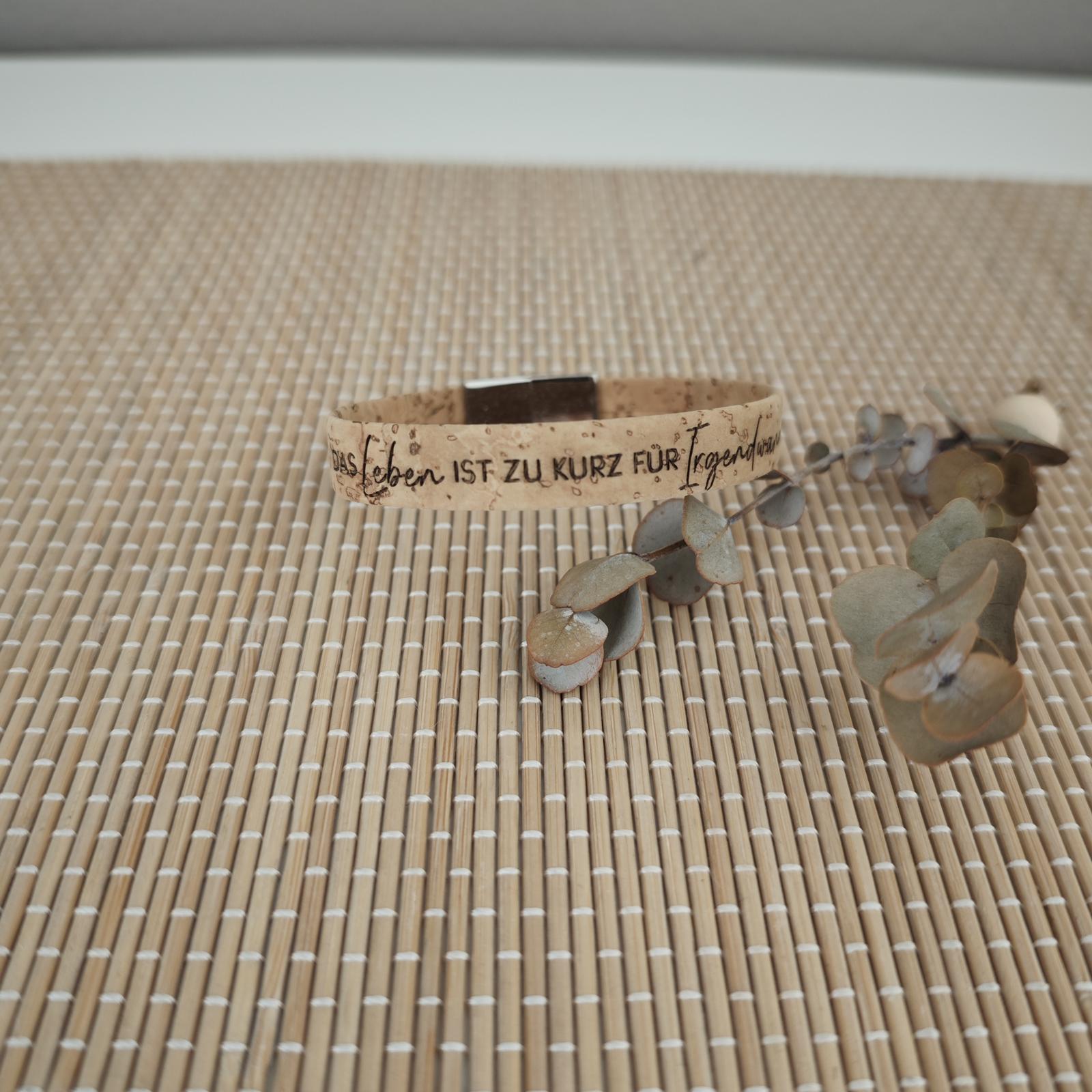 Armband Kork mit Spruch und Edelstahl-Verschluss -
