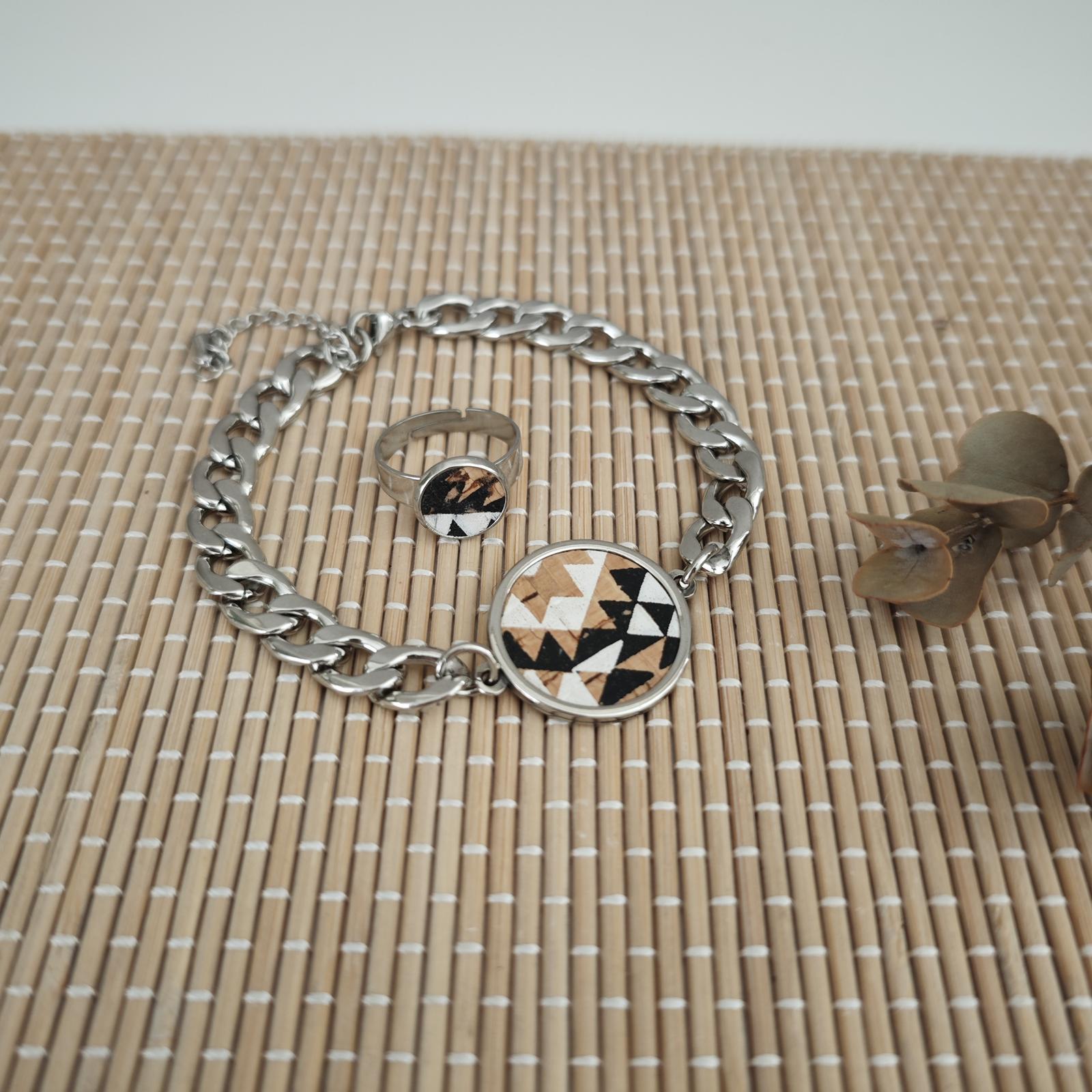 Armband Edelstahl mit Kork-Inlay - passender Ring oder Kette auf Anfrage -