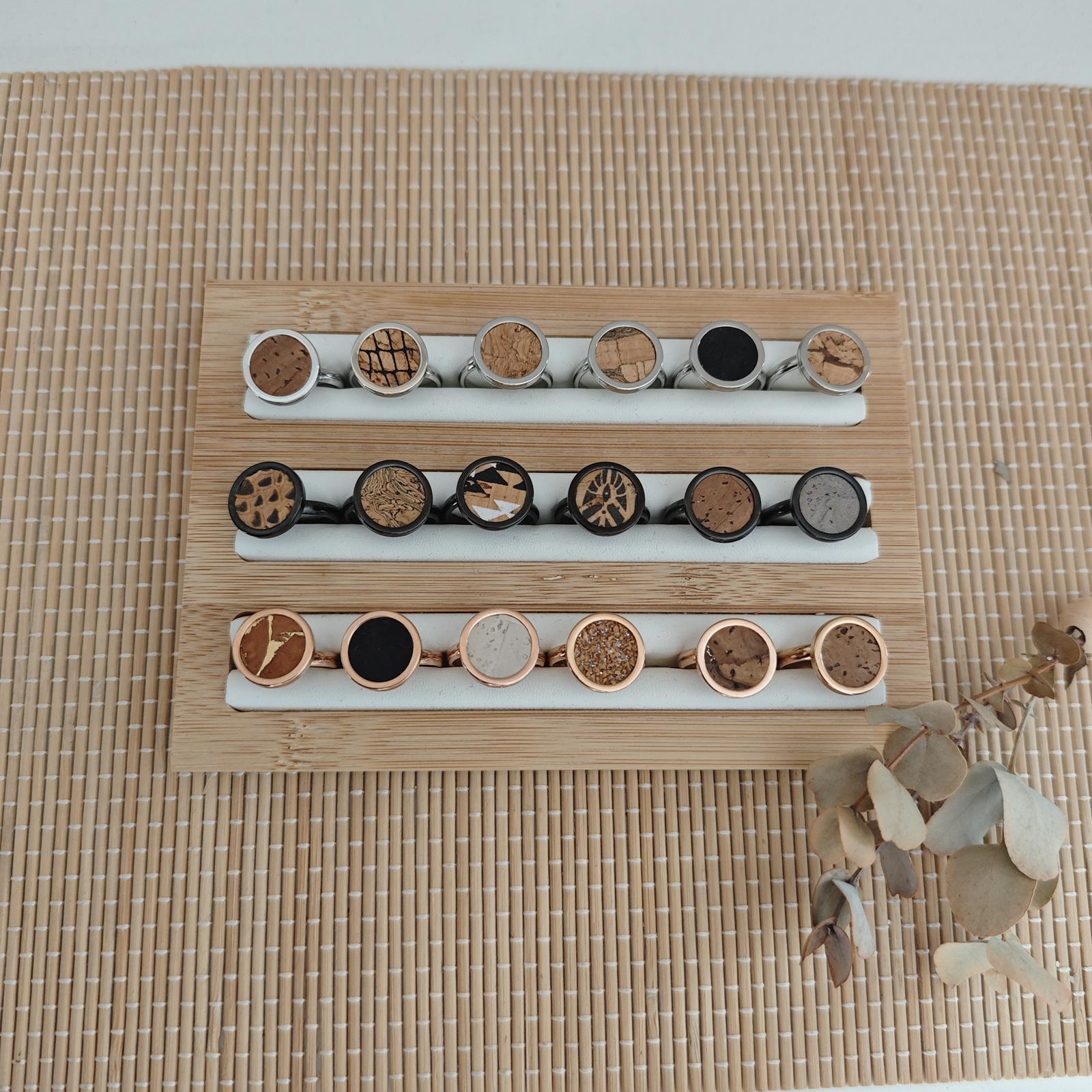 Fingerring Edelstahl mit Kork-Inlay, verstellbar, verschiedene Farben - Preis 12,- €